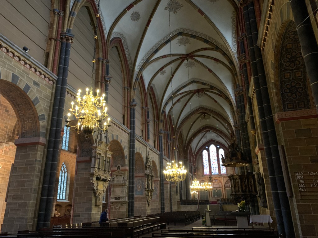 Ved siden av domkirken ligger et moderne bygg som bryter stilen med de gotiske byggene. Det viste seg å være parlamentet. Jeg ble usikker; det tyske parlamentet ligger da i Berlin? Men Tyskland er et føderalt land med stor selvstendighet til de 16 delstatene (på tysk länder). Og hver delstat har sitt eget parlament. Den store selvstendigheten til hver delstat er avgjørende for å forstå tysk politikk, og gjør det bl.a. mer krevende å etablere felles løsninger for hele landet på mange områder. Det er f.eks. noe av bakgrunnen for at Tyskland henger etter når det gjelder nettløsninger og wifi. Mobil- og nettdekningen er ofte svært dårlig i Tyskland sammenlignet med Norden.