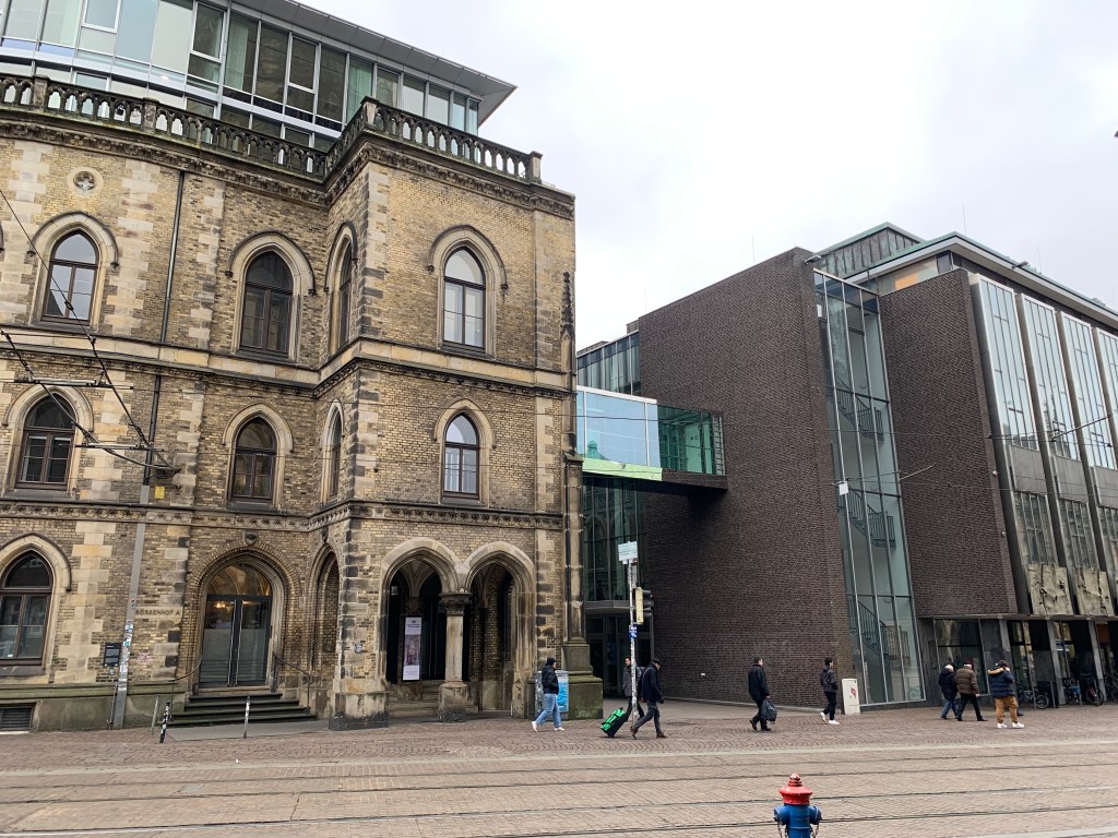 Jeg våknet i Bremen med snø på bakken, det er tydelig at det nå er kaldt i hele Nord-Europa (mars 2023). Jeg bodde på et rimelig hostel der jeg delte et fire-mannsrom sammen en yngre mann. Slike hostel fungerer helt fint for meg, særlig når jeg ikke betaler mer enn ca 200 kr for en natt.