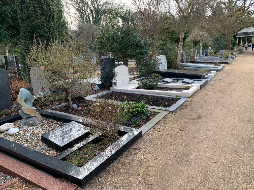 Ønsker om rammegraver på norske gravplasser er derfor primært et ønske om tilpasning til særlige muslimske skikker. Dette er en måte å markere graven på som også har lang tradisjon i «kristne» Europa, og som fortsatt er ordinær praksis i flere sentraleuropeiske land. Gravplassen i Amsterdam viste meg at dette kan gjøres på en måte som framstår verdig og skikkelig, og driftsmessig håndterbart. Det forutsetter imidlertid at både landskapsarkitekter og gravplassmyndigheter sammen kan utarbeide gode løsninger når det f.eks. gjennomføres nyetableringer av gravfelt. Og løsningene må tilpasses stedets vegetasjon og klima. Kanskje kan skepsisen i Norge til rammegraver gradvis justeres til gode lokale løsninger? (reiseblogg mars 2023)