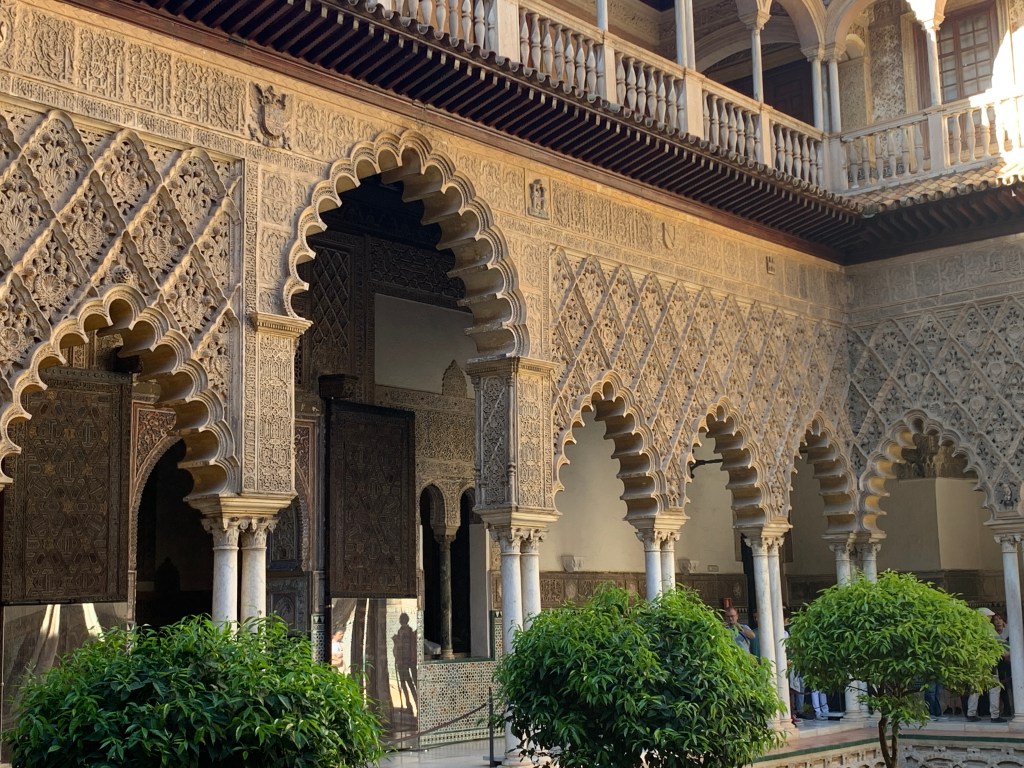 Et annet spesielt trekk ved katedralen i Sevilla er at den er en ombygd moske, og at den rommer mange elementer fra den gamle moskeen. Tårnet er bl.a. den gamle minareten for moskeen, riktignok noen ombygd på toppen. Mange bygningsarbeidere med bakgrunn fra den mauriske perioden deltok i arbeidet, og den gotiske kirken har fått noen arabiske elementer. Denne blandingen mellom arabisk arkitektur og andre stilarter har gitt en egen stil i Sør-Spania som kalles mudijar. Det store kongepalasset i Sevilla – Alcazar – har mange elementer som peker tilbake til en arabisk stil. Dette området var særdeles vakkert og orginalt, og er verd et besøk.