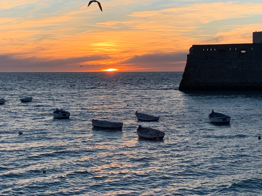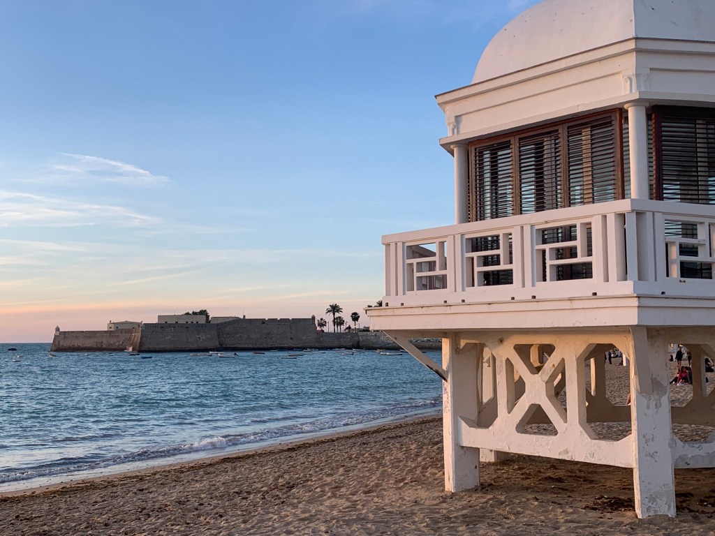 Vi badet på bystranda som helt ytterst mot vest, den heter La Caleta, og har bl.a. et flott badehus fra 1920-tallet. Det var på denne stranda at Halle Berry møtte James Bond i filmen Die Another Day. Mer om denne stranda finner du her: https://togieuropa.blog/2023/03/28/bystranda-i-cadiz-der-james-bond-motte-halle-berry/