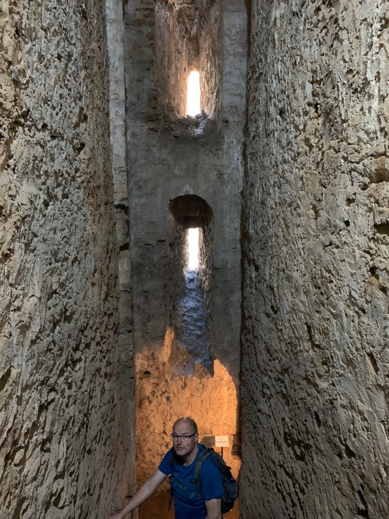 3. Et annet minne fra den arabiske perioden er trappene ved gjennom en sprekk i klippen. Her er det laget et anlegg som gjorde det mulig å hente vann fra elva uten å bli så lett oppdaget. Dette var avgjørende under de mange beleiringer av byen under «reconquista». Maurerne i byen greide seg under lange beleiringer takket være tilgangen til friskt vann. Vi gikk ned alle trappene ned til elva, og det var en Spennede vandring inn i en 700 års historie.