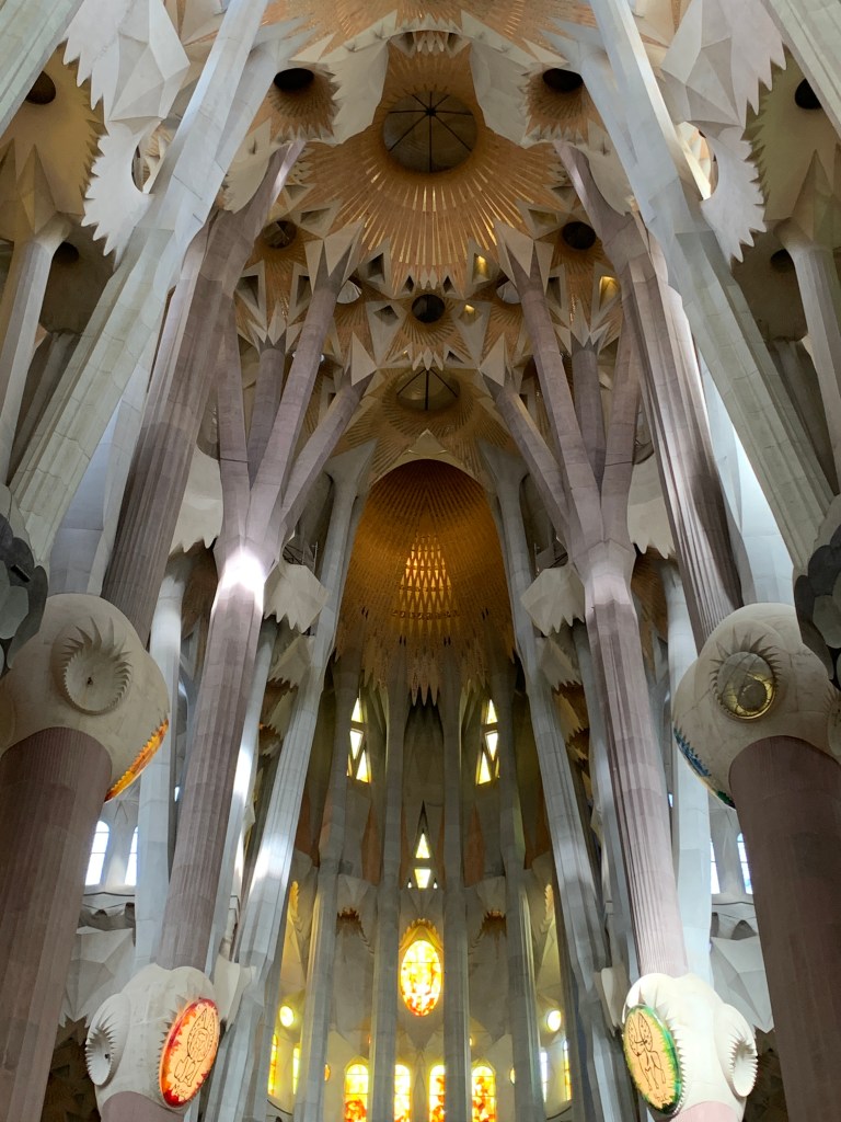 Byens store attraksjon er kirken Sagrada Familia, og ryktene om at det kan være vanskelig å få inngangsbilletter gjorde at vi forhåndskjøpte på nett for en god stund siden. Det gjorde at vi kunne komme rett inn på angitt tidspunkt. Jeg må innrømme at mine forventninger til denne kirka var moderate, en del bilder og omtale av kirka hadde skapt et inntrykk av en «skulpturell lek» som mest var en artig turistattraksjon. Jeg ble positivt overrasket! Gjennom en god nedlastet lydguide fikk vi et god innføring i både Gaudis liv, og hans arbeid og visjon for denne kirka. Og som kirke gjorde Sagrada Familia et mektig inntrykk, ikke minst takkonstruksjonene innvendig og all symbolikken som var lagt inn i bygget fra Gaudis side.