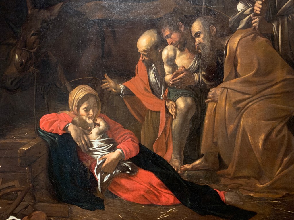 De to bildene av Caravaggio hadde et eget rom og en egen vakt. Det ene bildet heter «Gjeternes tilbedelse», og er et «julekrybbe»-motiv. Det var ekstra stas å få se dette bildet, da det var dette bildet som jeg skrev om på eksamen da jeg tok et delemne om Caravaggio for 5 år siden. Og jeg har brukt dette bildet som cover på en av mine julecder. Bildet ble malt her i Messina da han var på flukt fra Roma etter et påstått drap.