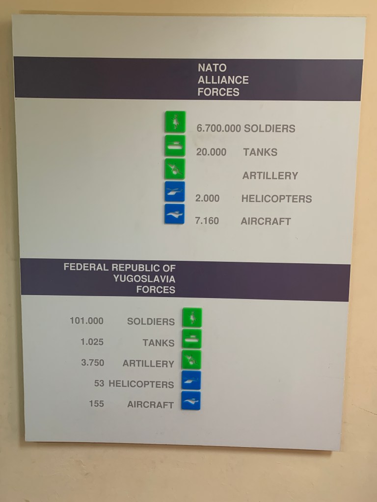 Etableringen av Jugoslavia var både et uttrykk for idealisme om å binde sammen de ulike slaviske folkene på Balkan til ett land, dels et uttrykk for ønsket om et slags stor-Serbia sett fra serbernes side. Denne dobbeltheten preget Jugoslavia helt fram til sammenbruddet i 1992. Det skulle være et likeverdig felleskap av alle de ulike folkegrupper og nasjoner i området, men det var serbernes som var de dominerende. Det var derfor også de som hadde mest å tape på at Jugoslavia ble splittet opp, ikke minst fordi det bodde mange serbere i Slovenia, Kroatia og Bosnia. Disse gikk fra å være majoritet i et stort land til å bli minoritet i et nytt og lite land.Kosovo inngår formelt i Serbia, men har fått en slags autonomi som Serbia ikke aksepterer. Det store flertallet i dette område er befolket av muslimske albanere. For serberne er dette området et slags kjerneområde for en rekke symbolsk viktige hendelser, bl.a. Kosovoslaget mot ottomanene. Kosovokrigen var for serberne en kamp for å beholde noe som ble oppfattet som nasjonens sjel, men de erfarte da å få resten av verden mot seg (med unntak av Russland). Nato gikk til angrep på Beograd, og i militærmuseet ble dette illustrert med en plakat som sammenlignet alle styrkene, fly, tanks mv i hele NATO med de militære styrkene i Serbia. På en enkel måte fikk plakaten formidlet Serbias opplevelse av å stå nesten alene. Museet hadde ingen omtale av tapene blant kosovoalbanere i denne krigen.