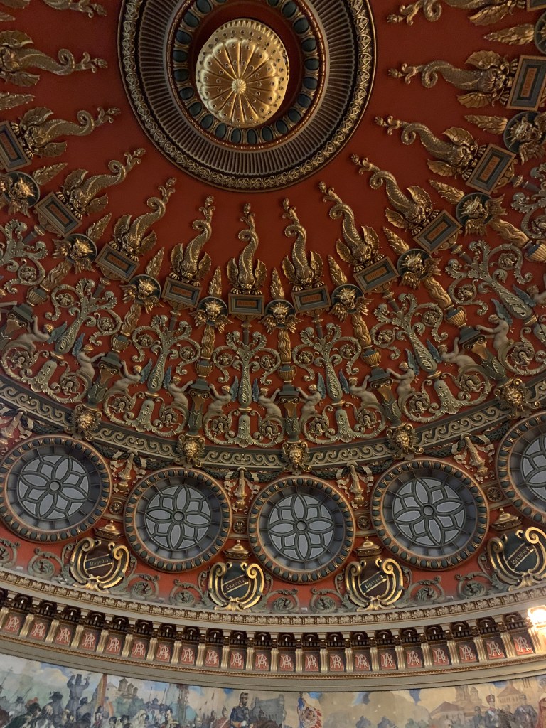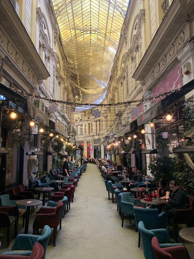 Jeg gikk av t-banen på Uniri-plassen, som kanskje kan kalles et slags sentrum i Bucuresti. Jeg gikk her innom «hovedkontoret» til den rumenske patriarken. Anlegget var ikke veldig stort, men flotte bygg på en høyde med utsikt gjorde det til en fint besøk. I Bucurestis storhetstid på slutten av 1800-tallet ble det bygget en rekke flotte symbolbygg i denne byen, slik som teater, konserthaller, universitet, gallerier og museer. Mange av disse ligger i området som kalles «Centrul Vechi». I dette området er det også svært mange restauranter og butikker. Jeg var ikke helt heldig med timingen, av en eller annen grunn var de fleste museer og gallerier stengt både på mandag og tirsdag. Dermed gikk jeg glipp av bl.a. historisk museum og nasjonalgalleriet. Jeg fikk tips av noen andre interrailere om appen «Atlas Obscura» som viser til artige/rare/spesielle ting som kan være verdt et besøk. Denne appen viste mange morsomme ting i dette området av Bucuresti, men flere av disse var også stengt eller lagt ned (f.eks. et kitch-museum og et «Lille-Paris-museum»). Et tips som var en suksess var en bokhandel som jeg vil si var den vakreste bokbutikken jeg har besøkt, jfr. bilde nedenfor (Carturesti Carusell). Jeg var også innom byens konserthus fra 1888. Det heter «Romanian Athenaeum», og var rettt og slett et praktfullt bygg. For 20 kr fikk jeg komme inn både i den nydelige forhallen og i selve konsertsalen. En organist øvde da jeg var innom, derfor fikk jeg også lytte til en liten orgelkonsert.