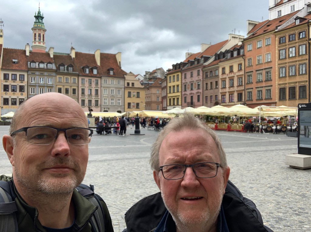 Denne søndagen i mai 2023 skulle Warszawa utforskes. Noen mener at Warszawa er en kjedelig by. Jeg dro dit for 8 år siden med lave forventninger, og ble den gangen veldig positivt overrasket. Ville dette stå seg denne gangen – og ville jeg greie å overbevise min reisekamerat Harald om at Warszawa er en spennende by? For å forstå hvordan byen framstår i dag er det nødvendig med tilbakeblikk på Warszawas historie.
