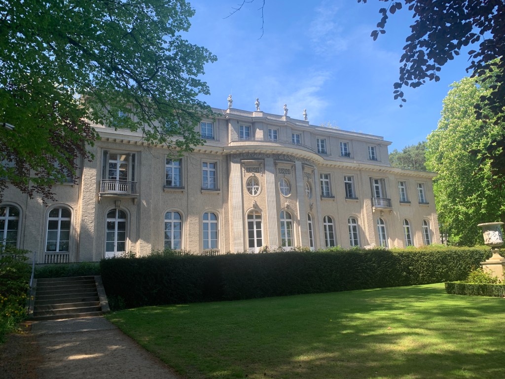 På vei ut til Potsdam stopper jeg ved Wannsee, en innsjø helt vest i Berlin. Den har alt av idyll en innsjø kan tilbyi, her er parker, strender, seilbåter, strandrestauranter og flotte villaer med store hager. I en av de fineste villaene møttest 15 høyere tyske tjenestemenn 20. januar 1942. Møtet varte bare i ca 2 timer, men et referat fra møtet avslørte hva som var temaet: Hvordan kunne de best samordne og organisere den endelige løsningen på jødeproblemet? Løsningen lå i en systematisk frakt av alle jøder østover til konsentrasjonsleirer, og på den måten gjøre det mulig med en utryddelse på den mest mulig effektive måten. Uten noen innvendinger til målsettingen la de 15 mennene planene for Holocaust . Eneste punktet hvor det var meningsforskjeller var hvordan de skulle forholde seg til «halvjøder og kvartjøder». Skulle disse kun steriliseres, eller måtte også disse fjernes for å «rense» Tyskland grundig nok?