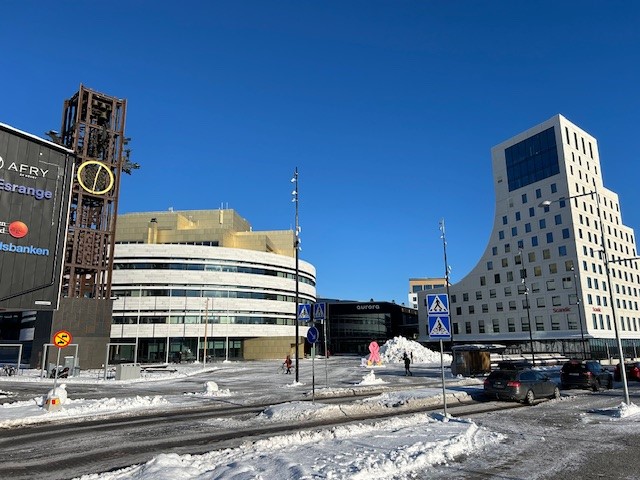 Jeg besøkte også den delen som skal bli Kirunas nye sentrum. Her var det etablert nye gater og bygd en helt ny bydel med rådhus, torg, kulturhus, hotell, kjøpesenter og boliger. Jeg fikk assosiasjoner til utbyggingen av Bjørvika i Oslo, men dette er tross alt i litt mindre målestokk. Arkitekturen var lite særpreget, men byplanleggingen la vekt på et tett sentrum med gater uten biler og hus med 5-6 etasjers høyder. Jeg får lyst til å komme tilbake om 5-10 år for å se om den nye byen har blitt et bra sentrum for Kiruna.