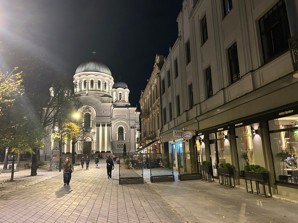 Kaunas er Litauens nest største by med ca 300 000 innbyggere. Byen har røtter tilbake middelalderen, og var i likhet med Tartu en hansaby for handel mellom øst og vest. Både tysk og polsk dominans preget byen inntil den ble lagt inn under Russland i 1795. Russisk styre fram til 1918 er synlig på flere måter. Sentral i byen står bl.a. en kirke med tydelig ortodoks arkitektur. Den ble bygd for de russiske soldatene i byen, men ble omgjort til en katolsk kirke da Litauen ble selvstendig i 1918. Under Sovjettida ble kirka kunstgalleri, men den er nå gjort om til katolsk kirke igjen.