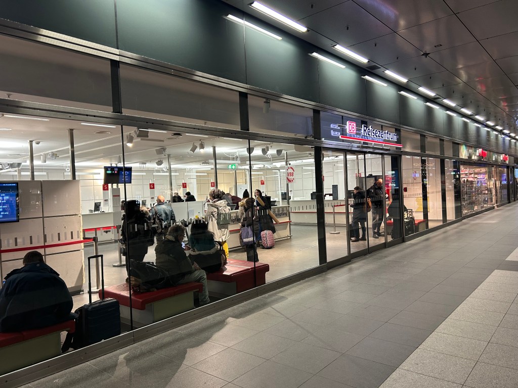 Deutche bahn sitt reisesentrum (billettsalg og informasjon). Første underetasje, østsiden ( UG 1)